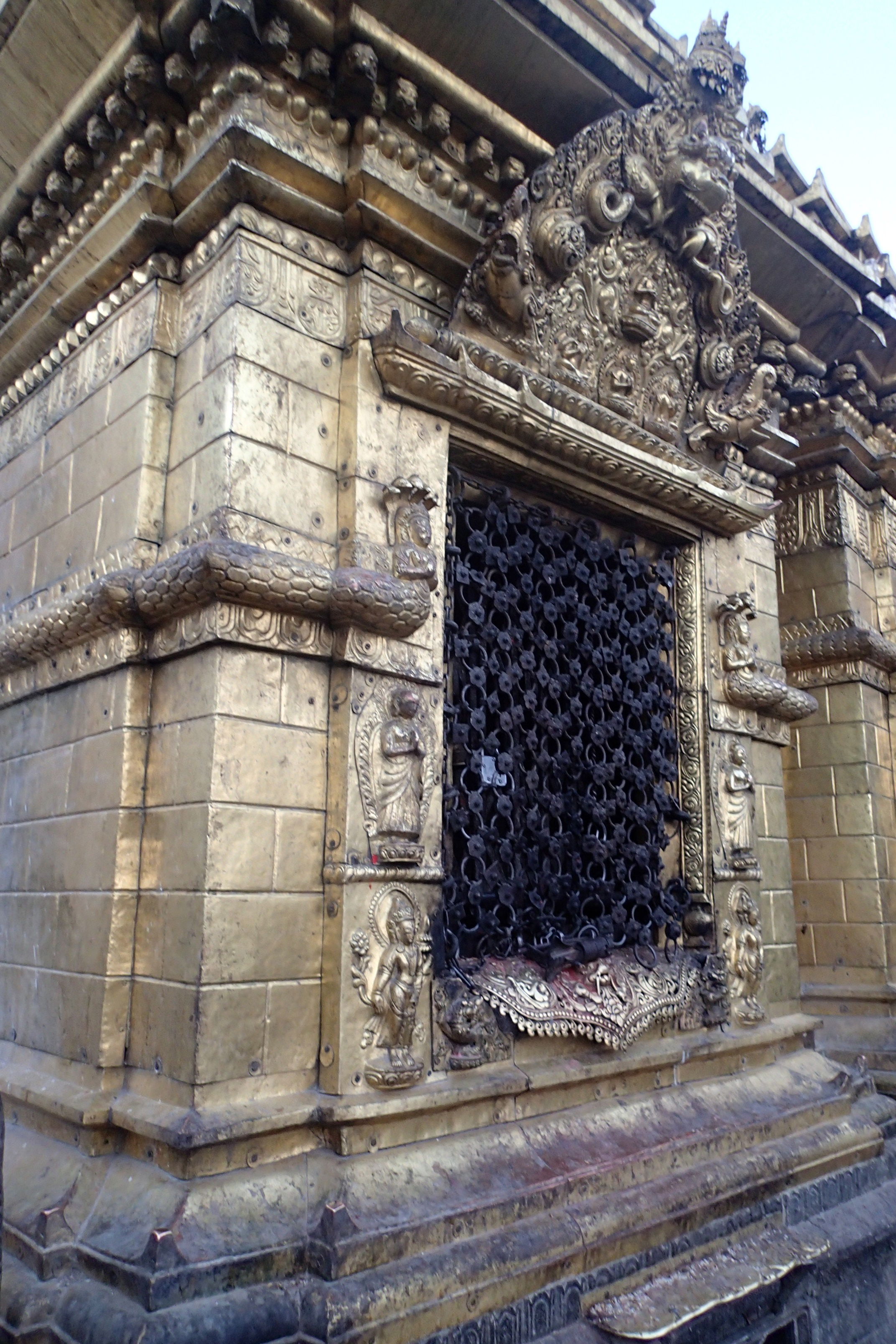Thamel during the day is totally opposite: chaotic, messy and full of people. The streets are tiny with lots of alleyways and shortcuts. Motorbike zip by at an alarming speed, considering how dense the pedestrian traffic can be, and incessantly honking. Tons of trekking gear shops line the crowded streets. Lots of bookshops, touristy stuff, bakeries, souvenir shops.