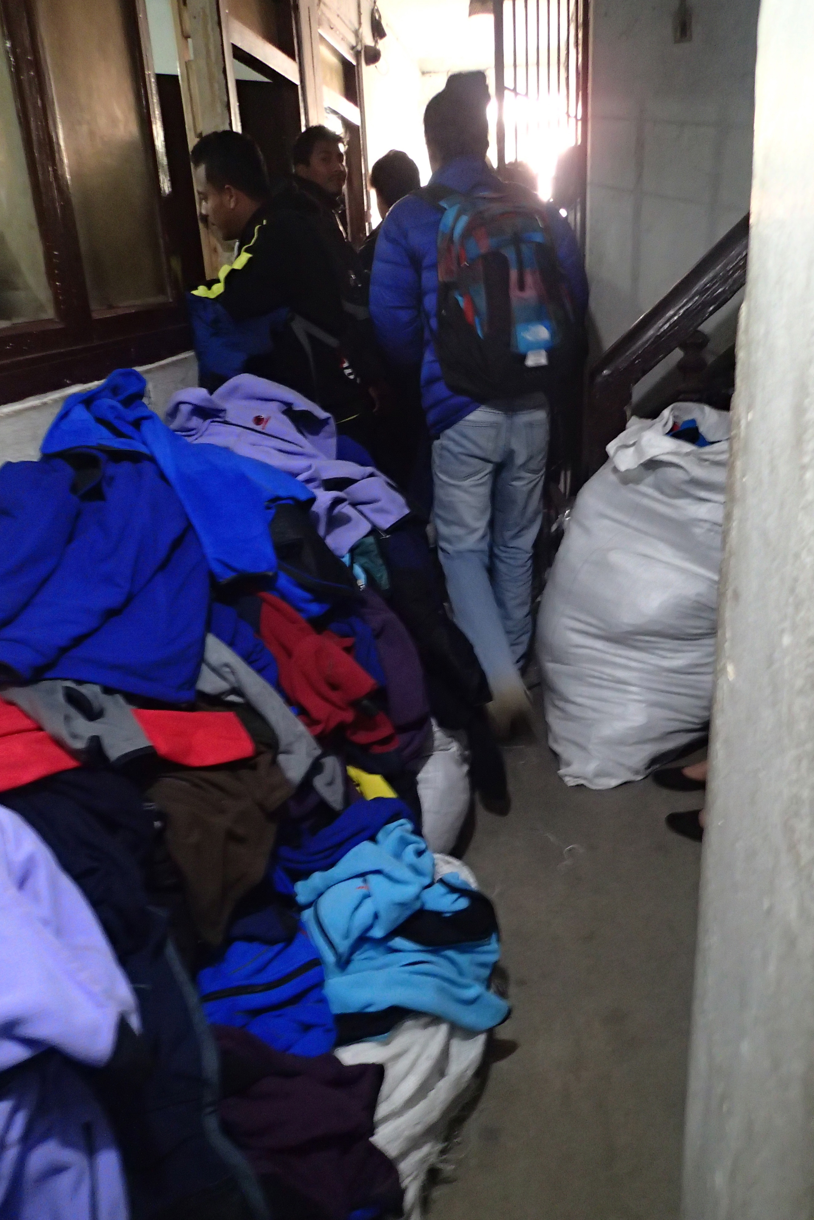 One gear shop we frequented was actually really popular with the guides and porters themselves. Called Kala Patter (Kalapatter? Kalapather? Many spellings of the same thing in Nepal), the shop front was on a street but the real deal came from their third floor ‘warehouse’ tucked away across the street. To get there you had to walk up a dark staircase, past a Tibetan restaurant and some trekking company offices. The place was a complete mess, with jackets and fleece and mittens piled high up to the ceiling in no particular order. Some rooms were so full you can only look at the stuff from the doorway, the rest of the room inaccessible. But DAMN were the prices solid. I got a ‘Mammut’ artificial down vest for $15USD, which I still use to this day. My friend got gaiters and a decent-looking pair of pants.